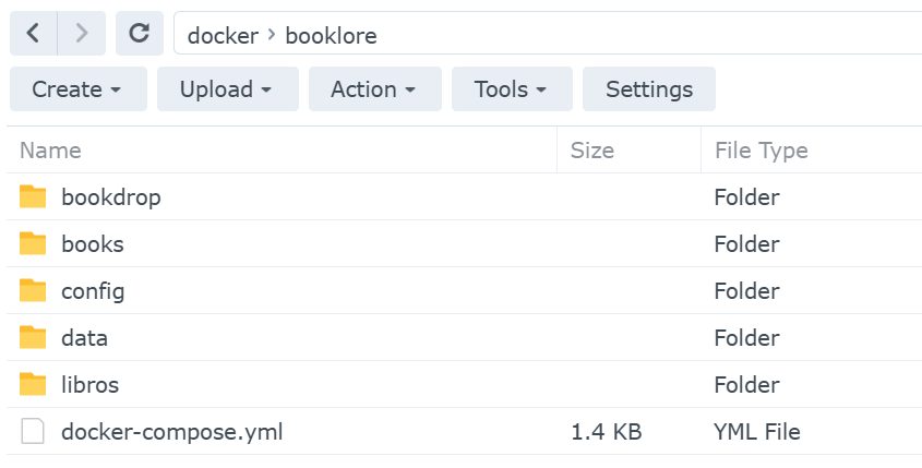My example and deployment is in this directory /volume1/docker/booklore and I created it using File Station