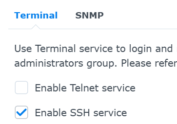 To obtain this value for the user, you will need to do some temporary terminal based access to your Synology. If you know how to do it, you can scroll to this point to continue the deployment, if you don’t keep reading.